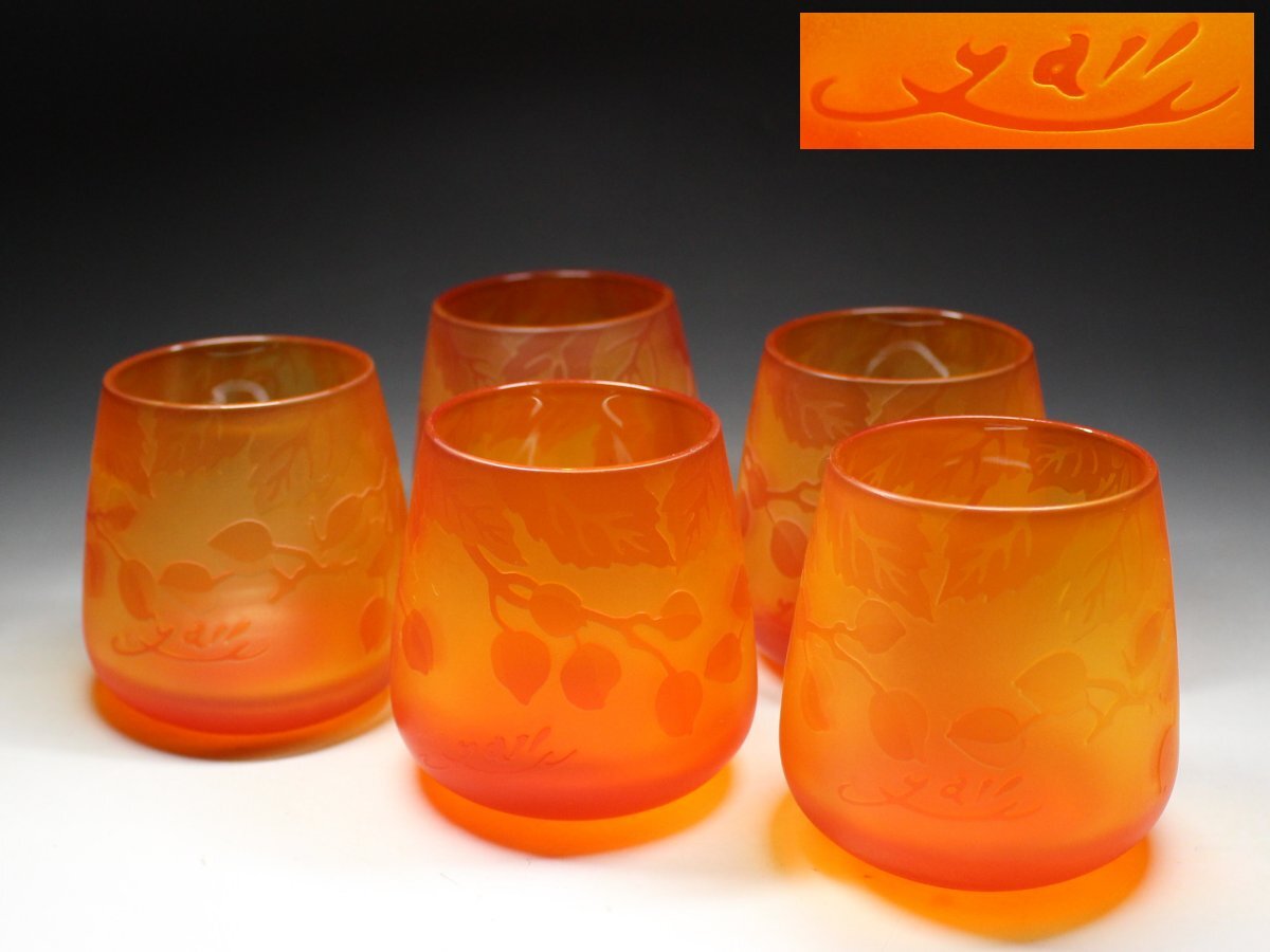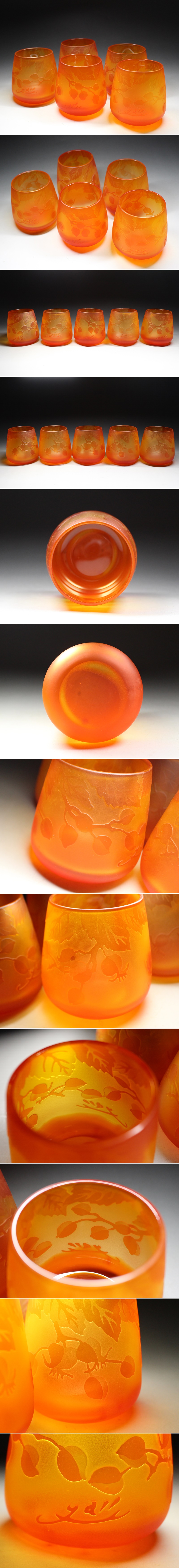 - ▲エミール ガレ 風・グラス・5客・花文・ロックグラス・タンブラー・フリーカップ・Emile Gall▲se213h