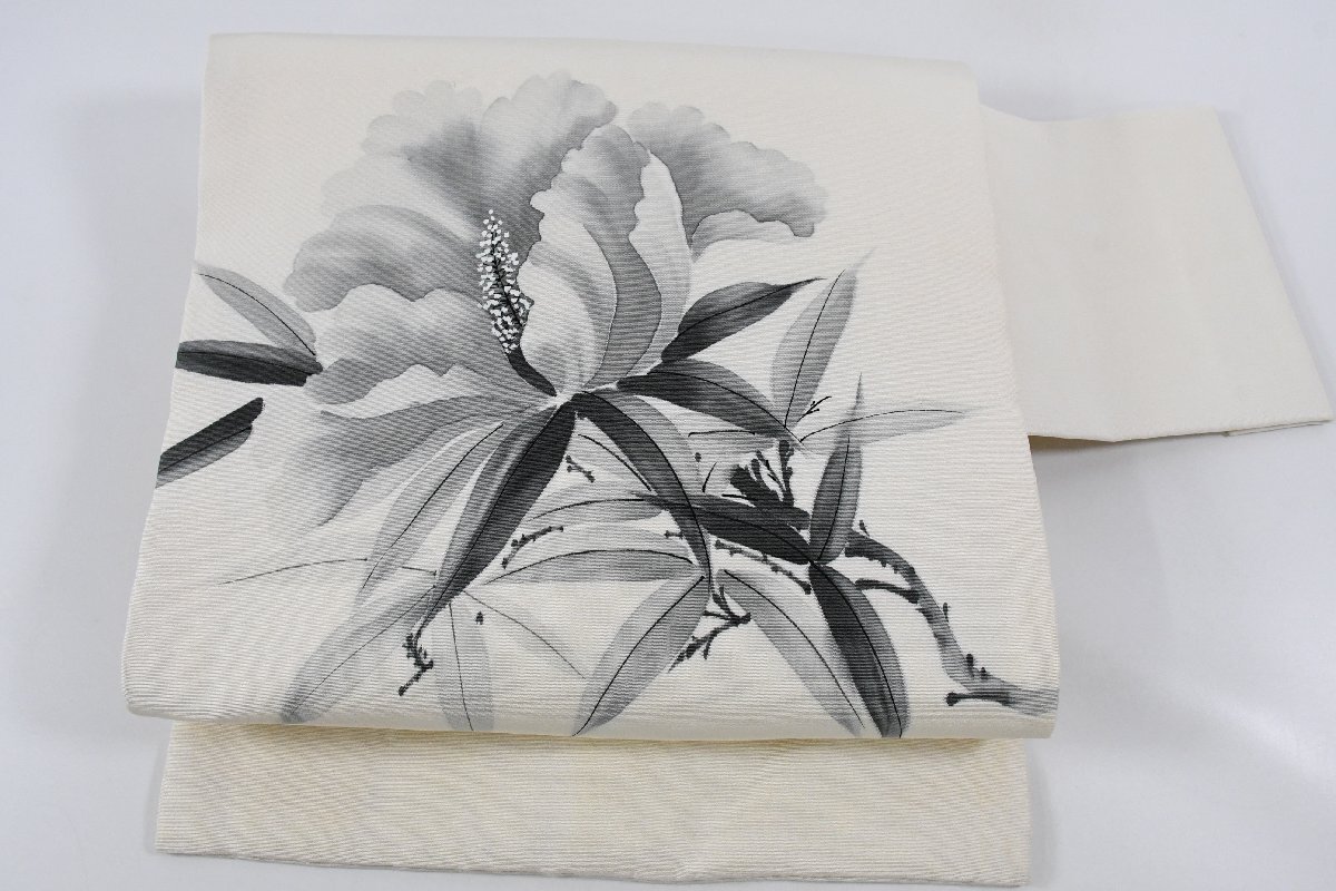 - 名古屋帯 塩瀬 花 落款 帯丈344cm ★着物屋 ne-16158 桜庭呉服店