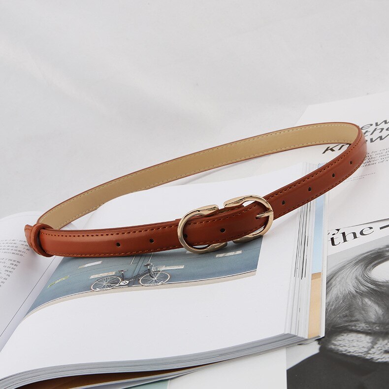 - 【ブラウン】超軽量 レディース スリム ベルト GOLD-BUCKLE ゴールド バックル タイプ x1本