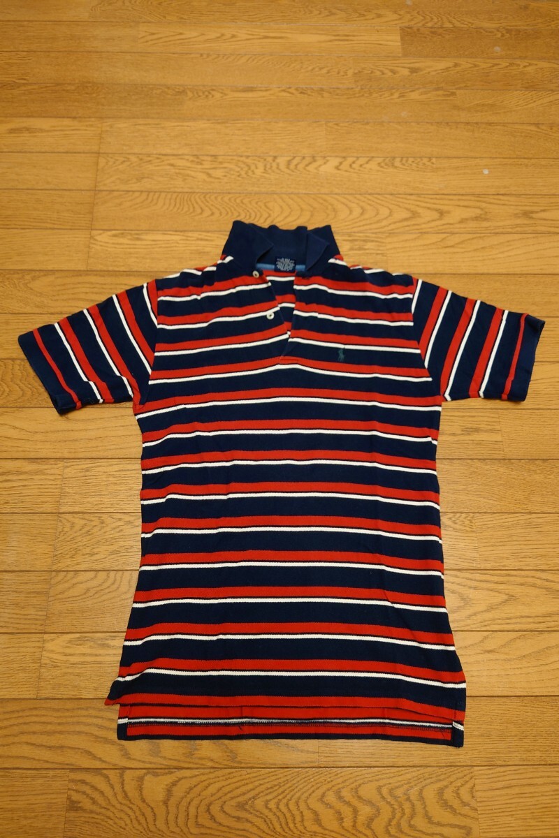 - ポロ ラルフローレン ポロシャツ ネイビー 赤 ストライプ M 半袖