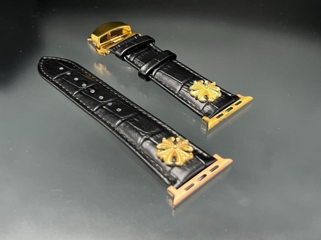 - アップルウォッチ ワイド幅 本革レザー ベルト 24mm幅 クロスチャーム付 ウルトラ 49mm 46mm 45mm 44mm