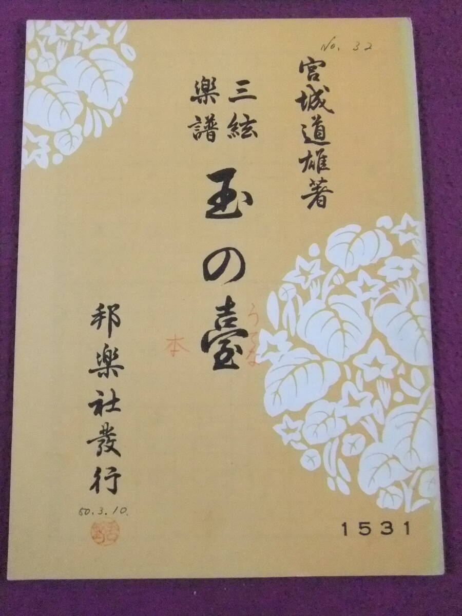 - ■A6774/【和楽器・楽譜】/『三絃楽譜 玉の臺(うてな)』/1973.8.20/宮城道雄著/邦楽社■