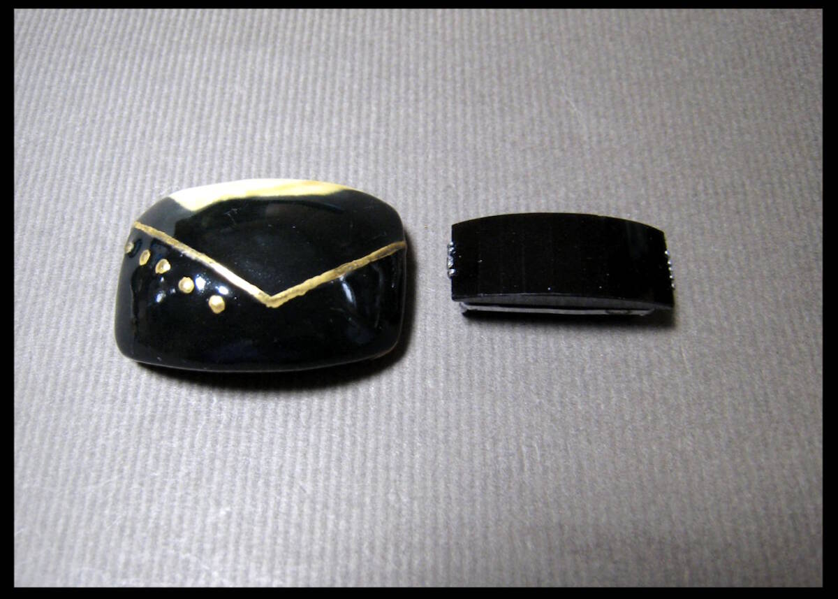 - 黒色 金絵付け 陶磁器 黒色ガラス アーチ型 帯留 2点 着物 帯飾り 和装小物