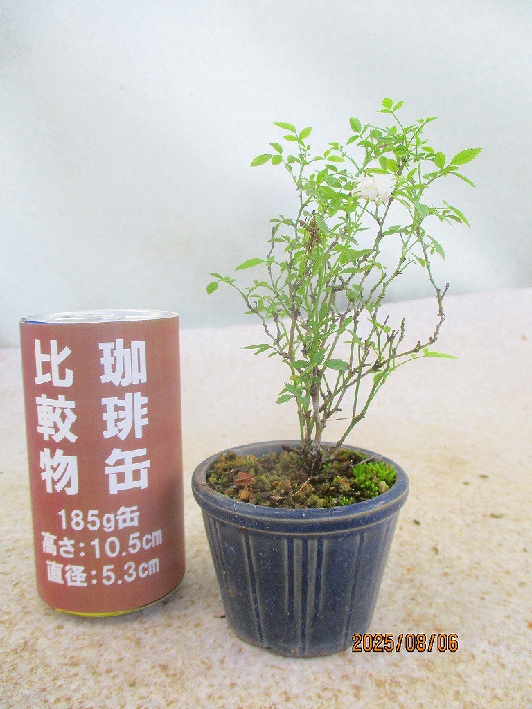 - [緑の市場] ミニ盆栽 野茨 (8232瑠璃釉丸鉢)全高:18㎝【小型送料】*同梱包対応「まとめて取引」厳守*60サイズ送料明記