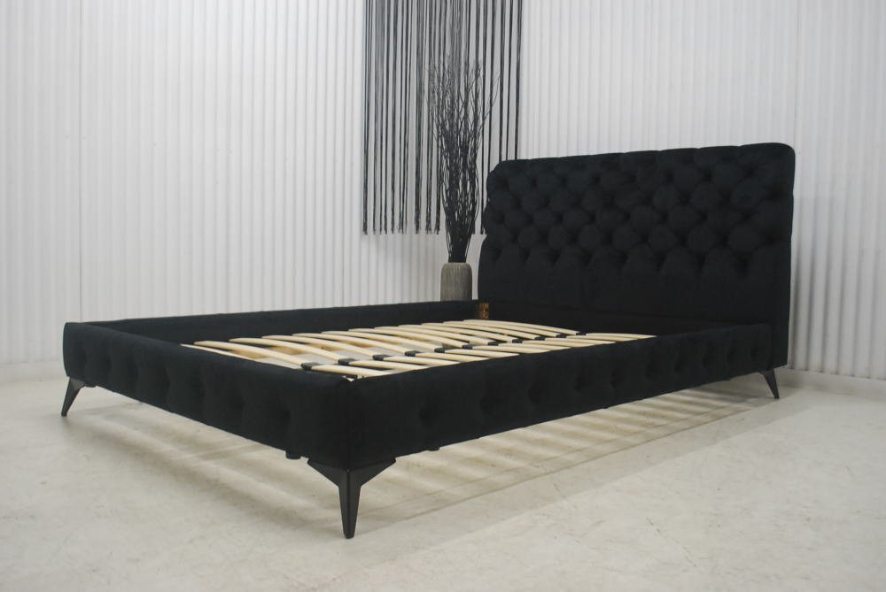 - 大特価 アウトレット 展示品 現品限り 送料無料 ラグジュアリーモダン ベロア調ファブリック 黒 ブラック チェスターダブルベッド