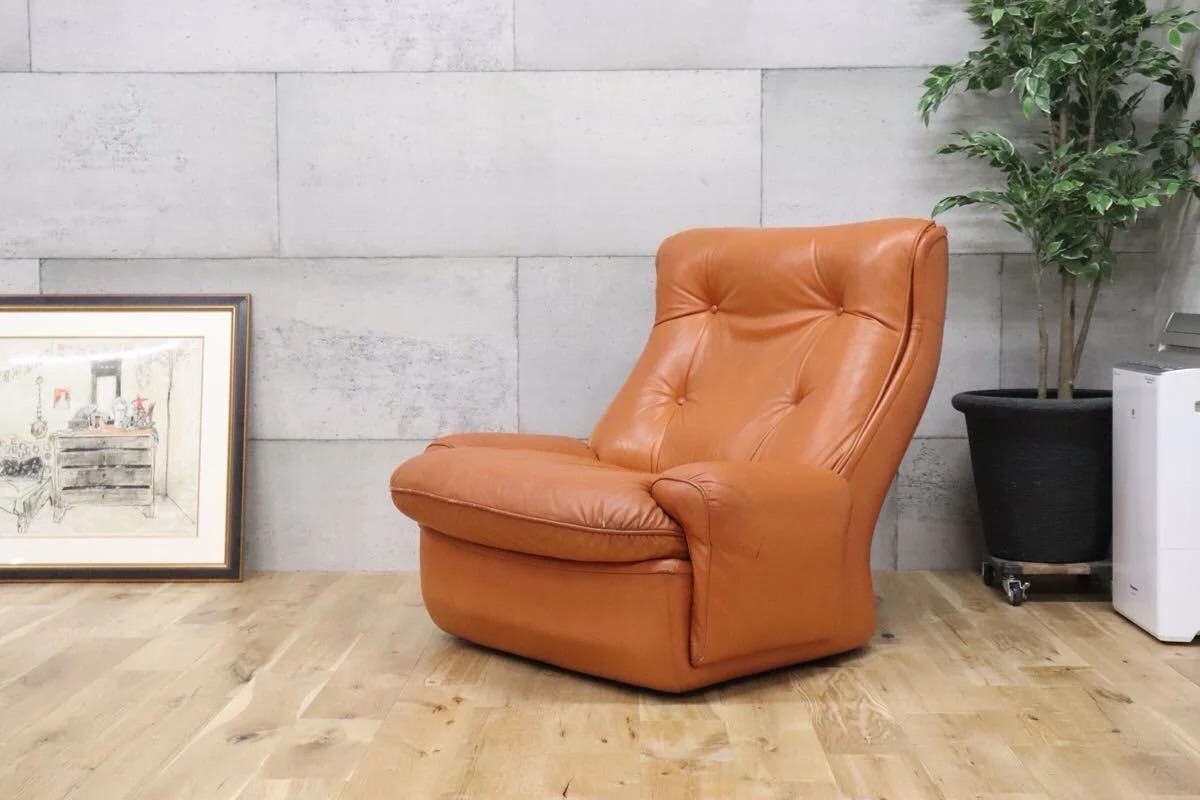 > gmck343B ○ 希少 airborne エアボーン社 ○ ビンテージ 1人掛けソファ シングルソファ リビング チェア 革張り 年代物 パーソナルチェア