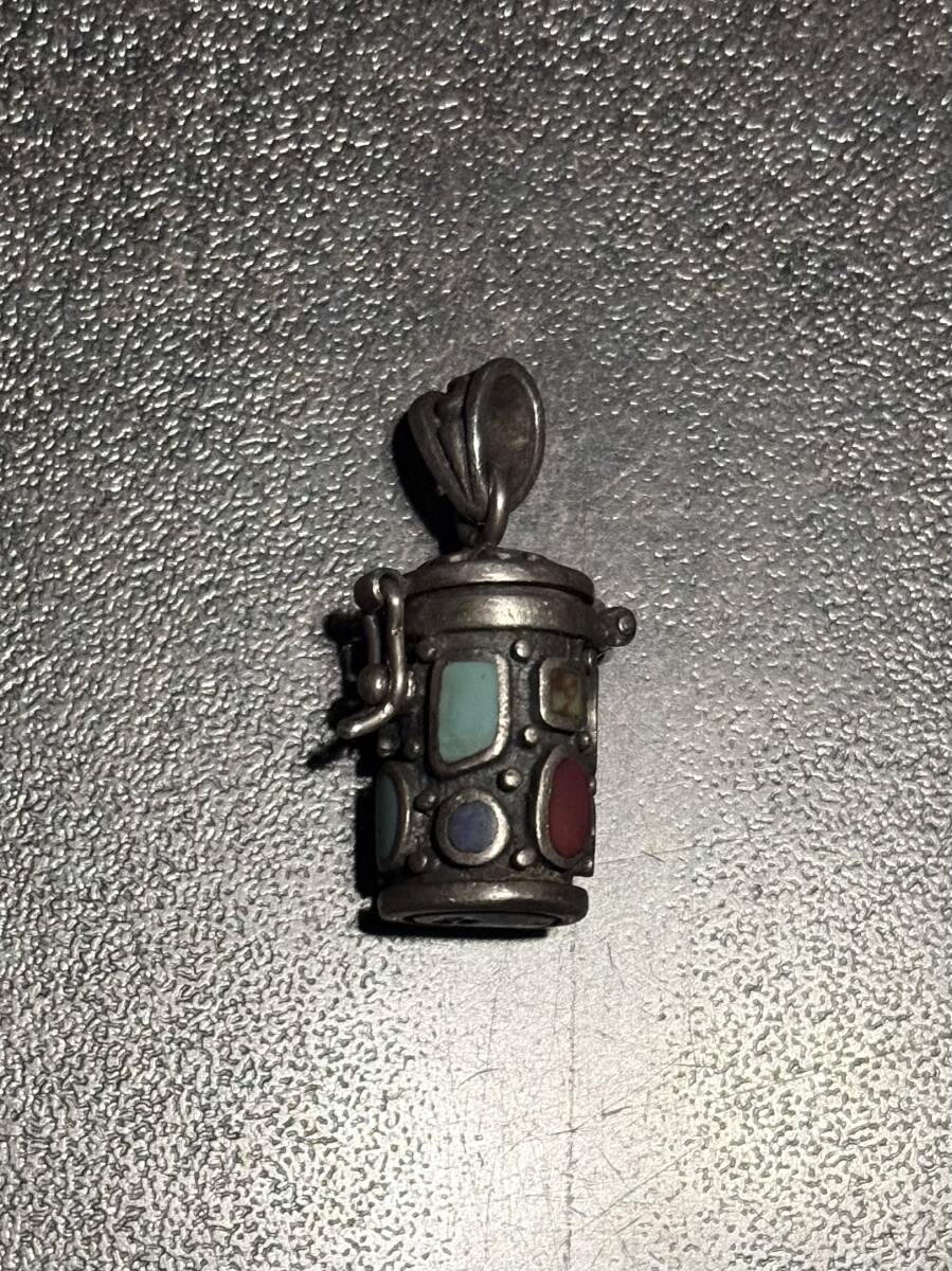 > 80sビンテージSILVER925シルバー銀製トップ希少ピルケース蓋ギミック開閉ネックレス石ペンダント80年代メキシカン インディアン ジュエリー