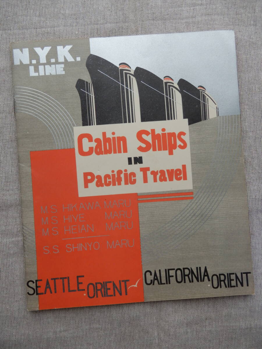 > N.Y.K.LINE 日本郵船「Cabin Ships in Pacific Travel」英文冊子 23×19㎝程 シアトル・カリフォルニア航路氷川丸日枝丸平安丸 AC1357