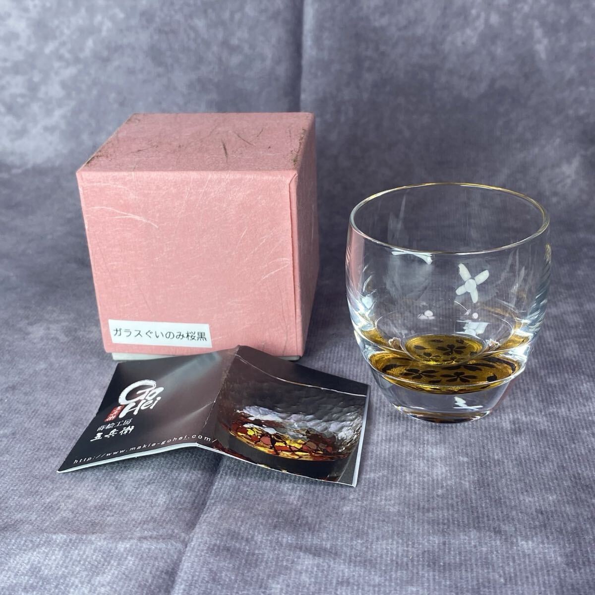 - 未使用 蒔絵工房 蒔絵 五兵衛 桜ぐい呑み 湯呑み グラス 桜のぞき 酒器 ガラス工芸 さくら 美術