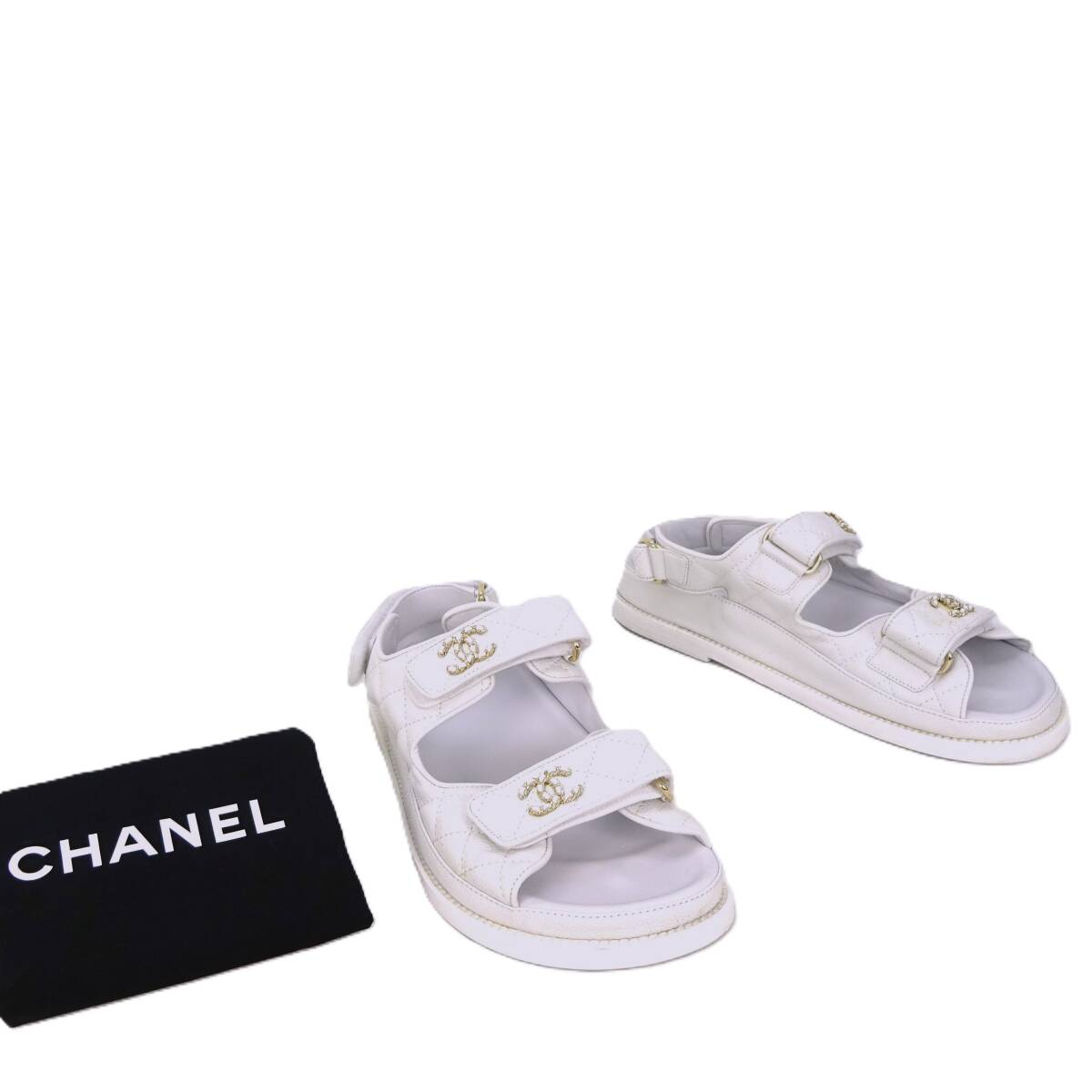 > 本物良品■シャネル■ココマーク マトラッセ キャビアスキン レザー サンダル/ホワイト/ゴールド/イタリア製/37C