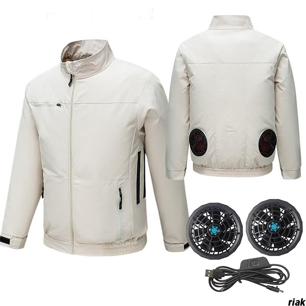 - 【5段階の風量調節(超高速~変速モード)で細かく調整可能】 ファン付き作業服 空調服 熱中症対策 UVカット 防撥水 冷却 ベージュ L-XL