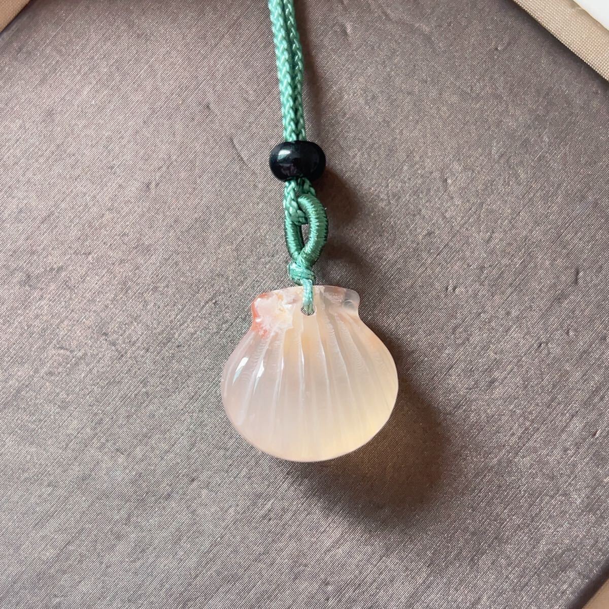 - 訳あり◇桜瑪瑙(チェリーブロッサムアゲート)◇ネックレスペンダント◇貝殻形天然石◇パワーストーン巾着袋付き◇プレゼントにも010P894