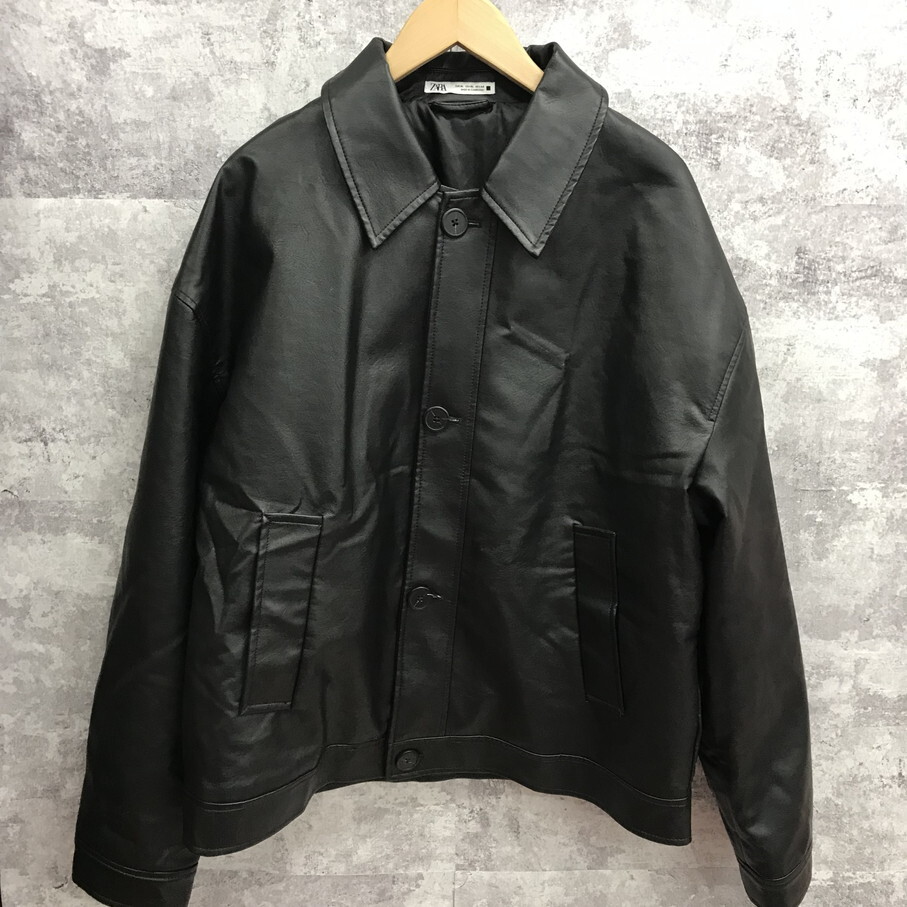 - ZARA ザラ フェイクレザージャケット スクエアカットフィット ブラック【F0109-004】