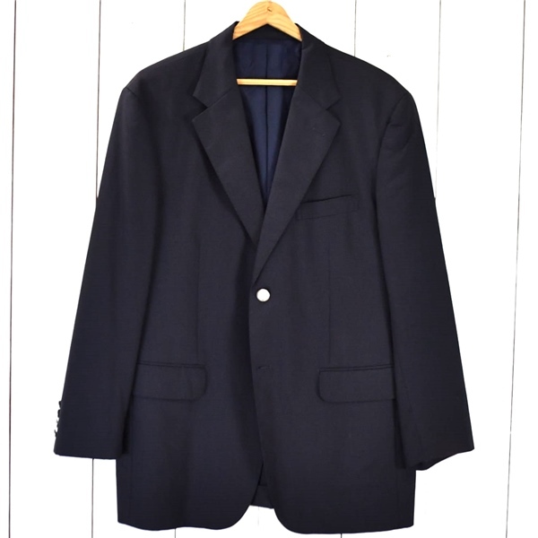 2つボタンシングル。銀ボタン。フラップポケット。サイドベンツ。袖口4つボタン。開き見せ。背抜き。ネーム刺繍なし。この機会に是非!