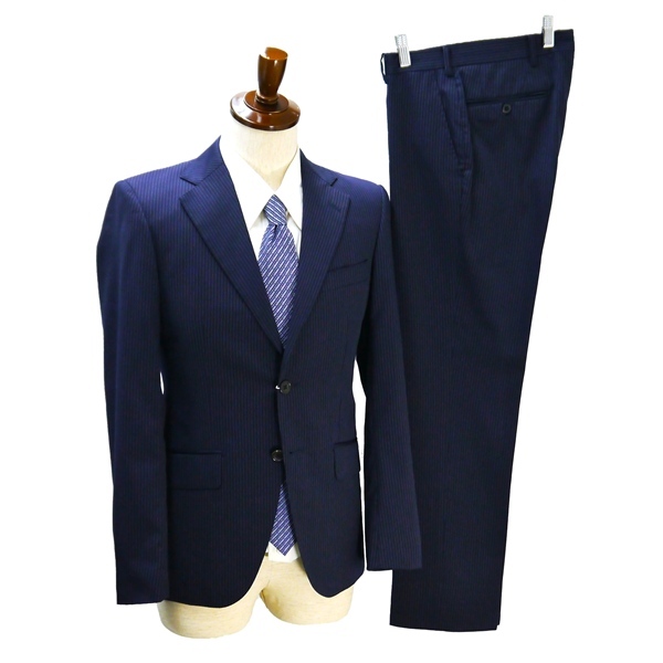 表地(全体的)状態:B(ジャケットの襟首と両袖に弱めのてかりが見受けられます。スラックス2本とも前面のウエスト中心付近にうっすら汚れ・股上から両膝下に弱めのてかりが見受けられます。その他の状態は良い事から、今後もまだまだご愛用頂けるお品だと思われます。)