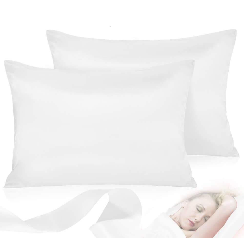 > 静電気防止 滑らかな材質 (43*63, 両面シルクタイプ 美髪 美肌 封筒式ピローケース 白い) サテンの枕カバー 2枚セット