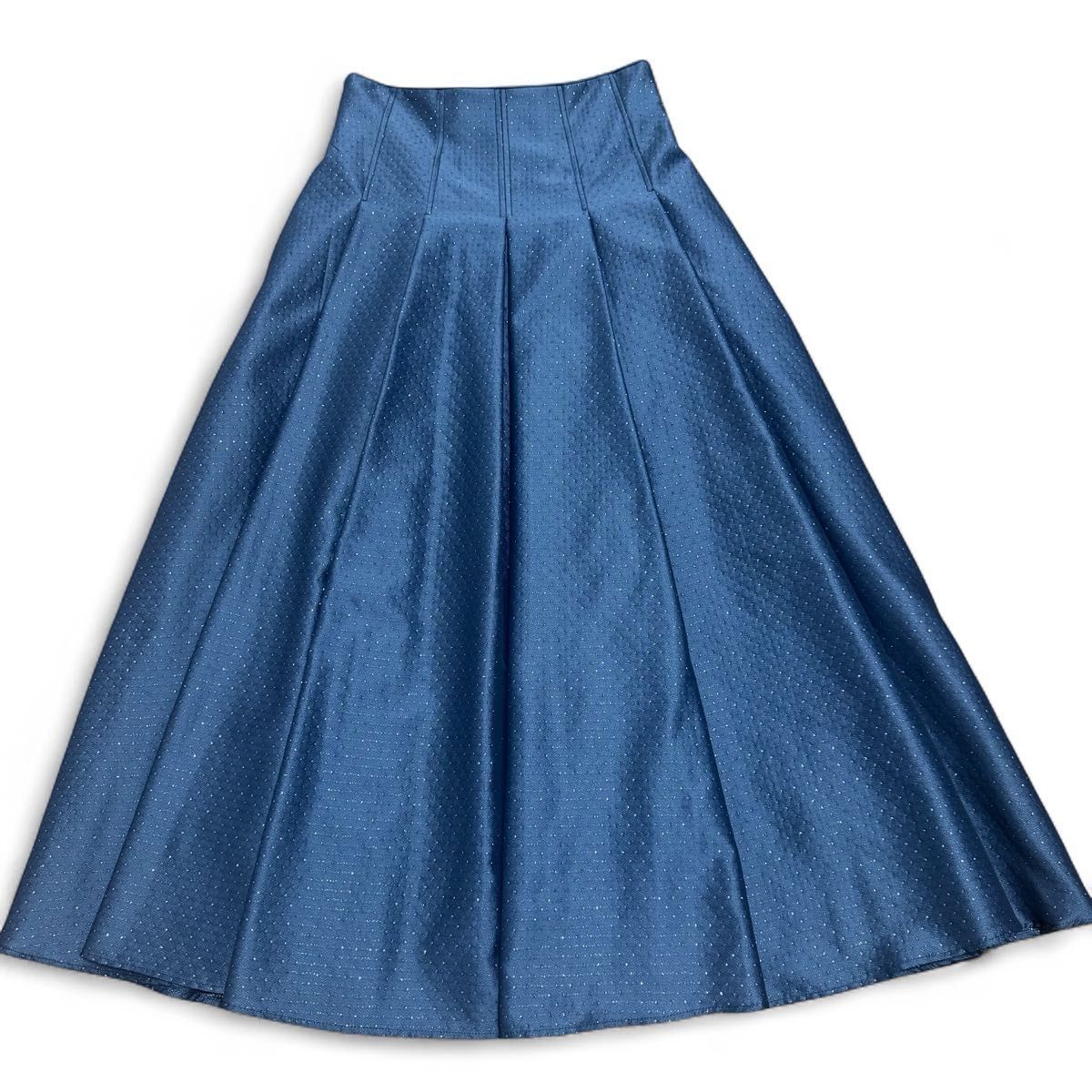 - 【ほぼ新品】FRAY I.D フレイアイディ ラメ ドット ジャガード タック フレアスカート マキシ ギャザー ネイビー 1