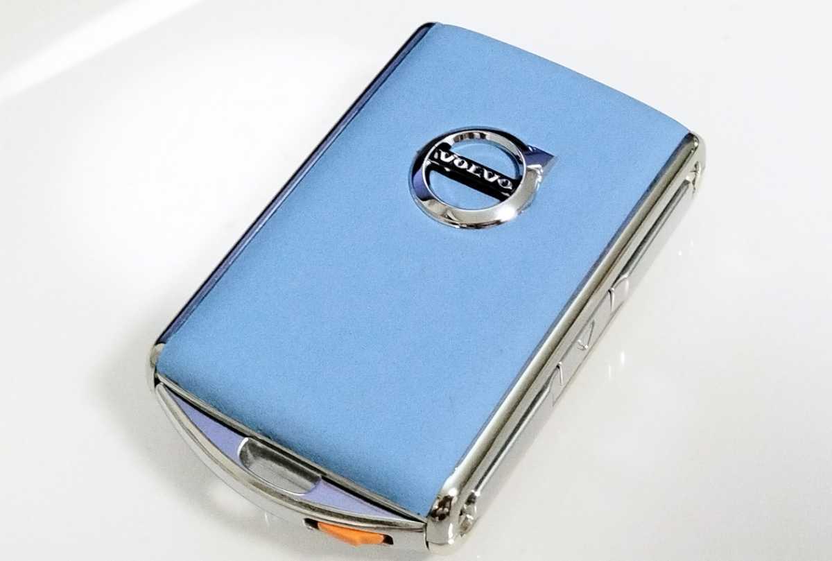 - ボルボ★本革リモートキーフォブシェルカバー ブルーレザーXC40 XC60 XC90 S60 V90 C40簡単キーカバー交換式