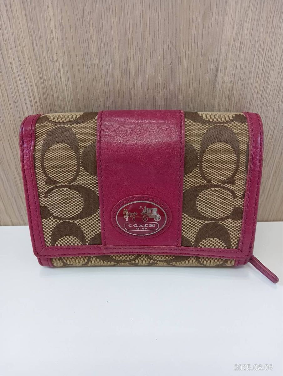 - 【中古品】COACHコーチ シグネチャー 二つ折り財布 茶ブラウン×ピンク ファッション小物 財布 現状品