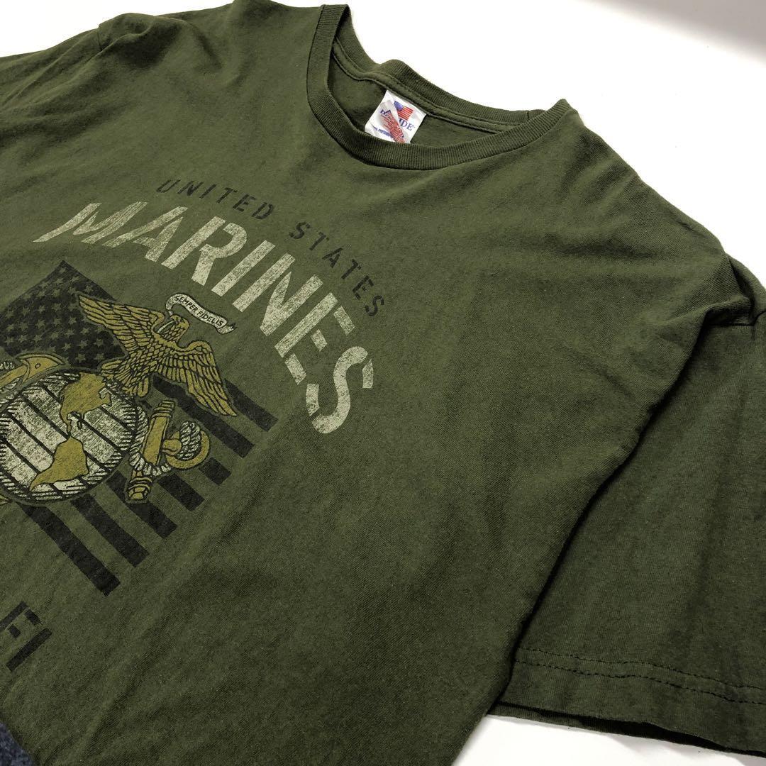 - 【USA製】BAYSIDE MARINES ミリタリー 半袖Tシャツ カーキXL