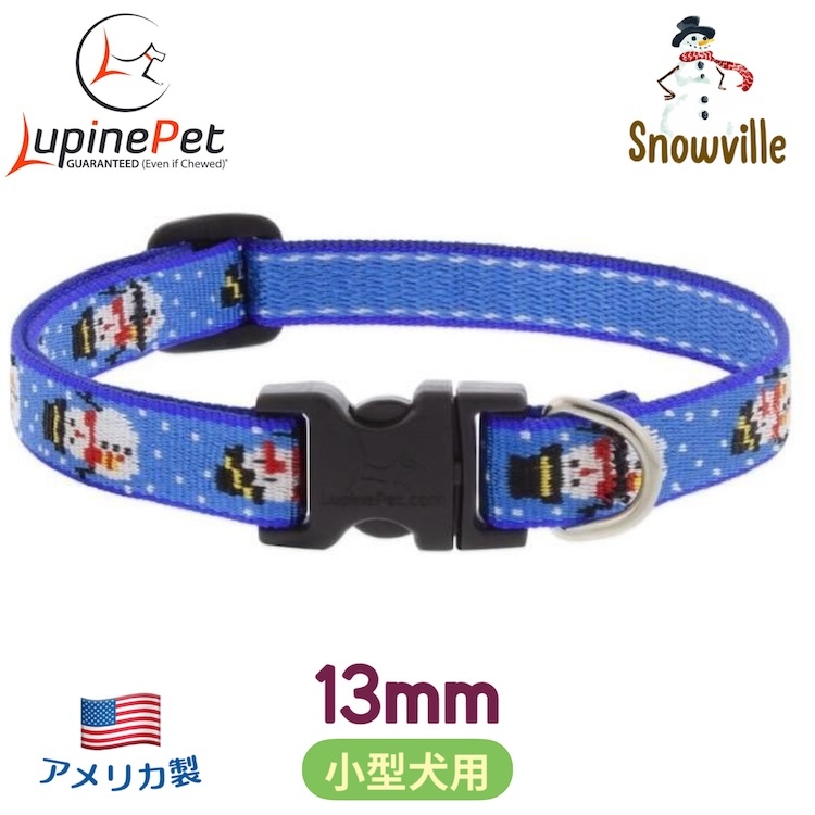 > スノービル柄 小型犬向けワンタッチ首輪13mm幅XSサイズ 15-22cm LUPINE アメリカ製 軽量丈夫 ルパイン Snowville