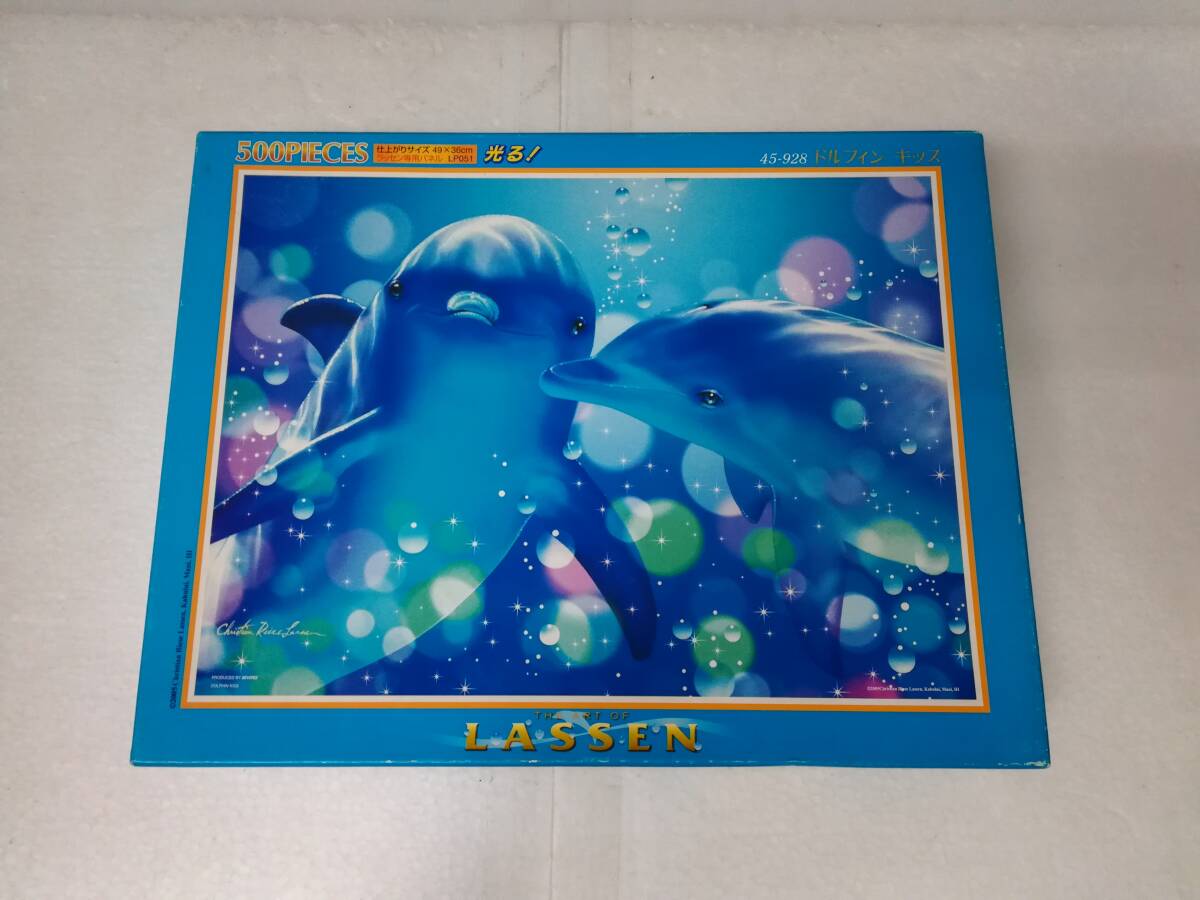 - ■中古 ジグソーパズル ラッセン ドルフィン キッス 45-928 500ピース 49×36㎝ 光る! 欠品なし ビバリー