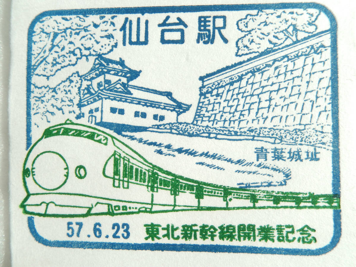 - 非売品《 東北新幹線 200系 昭和57年6月23日 開業記念 「仙台駅」デザイン 紙コースター 》☆★☆★☆★☆ 鉄道 グッズ 電車 青葉城址