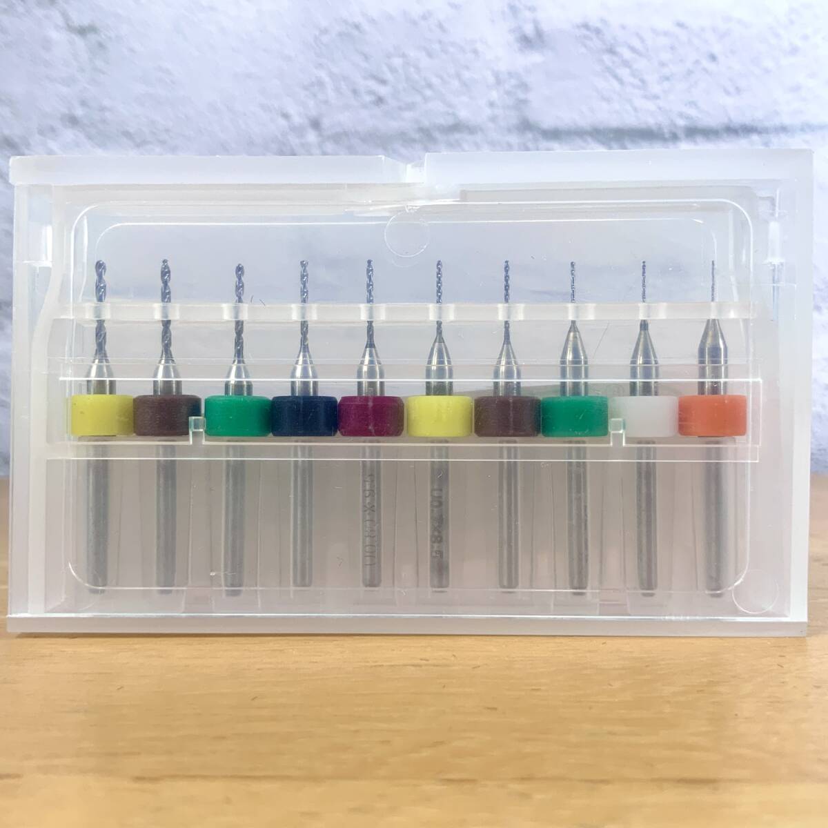 - 超硬マイクロドリルビット 0.3〜1.2mm 10種類セット ケース付き プラモデルなどに
