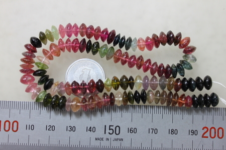 - 天然トルマリン、1本(7mmボタンビーズ、37cm前後)150キャラット