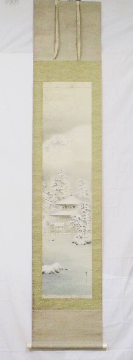 - 《ジャムルK》 khc0811-33◆◆ 掛軸 隆光 「金閣寺」 絹本 肉筆 真作 共箱 長期保管 シミ汚れあり