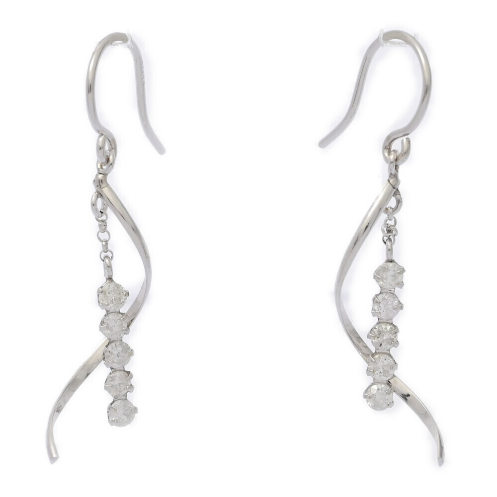 > ねじれモチーフ 曲線 ダイヤモンド スウィング フックピアス/K10WG/416-0.7g/ホワイトゴールド/プレゼント/記念日■584216