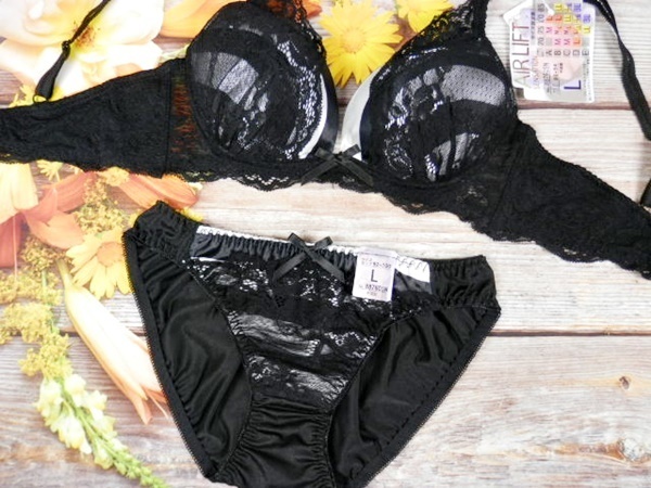 > WNK02★ノンワイヤーブラショーツセット【Lサイズ】下着 ランジェリー エアリフト 低反発 ナイトブラ 黒
