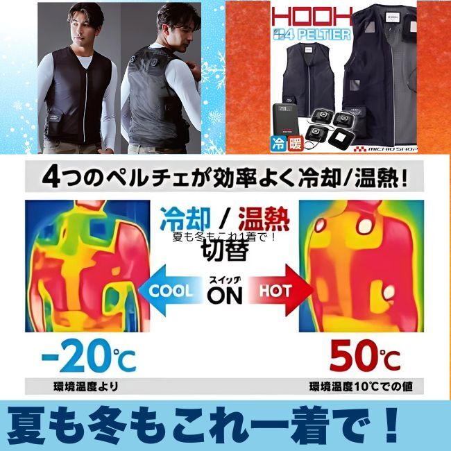 - 【夏も冬もこれ一着で!】バイク用ペルチェ冷暖ベスト 冷却ベスト冷温切替 4つのペルチェ 熱中対策 4段階 温熱 防寒 人気 おすすめ