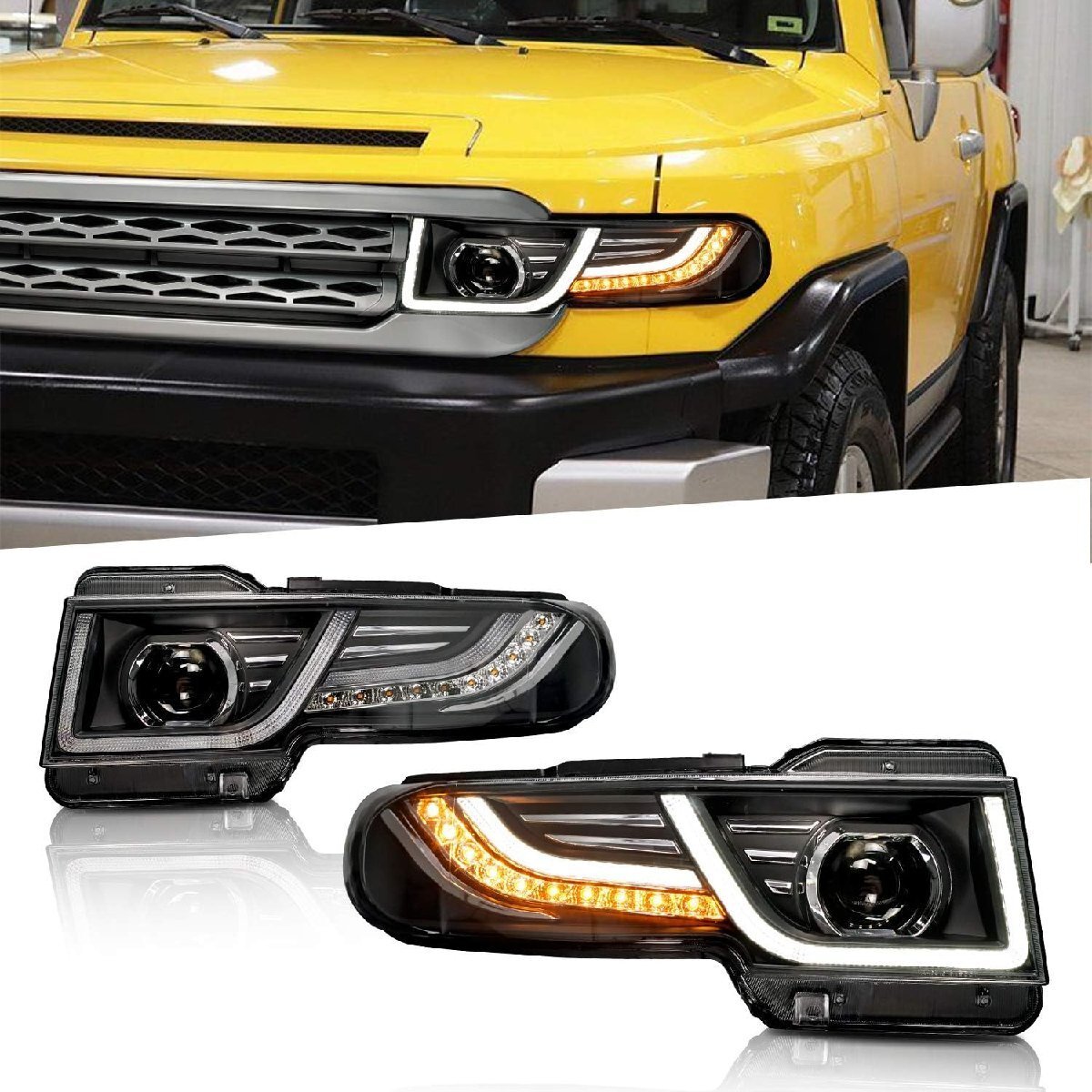 > トヨタ FJ クルーザー ヘッドライト全LEDヘッドランプ ランドローバースタイル流れるウインカー グリル無料付き 左右セット改装用2007-2023