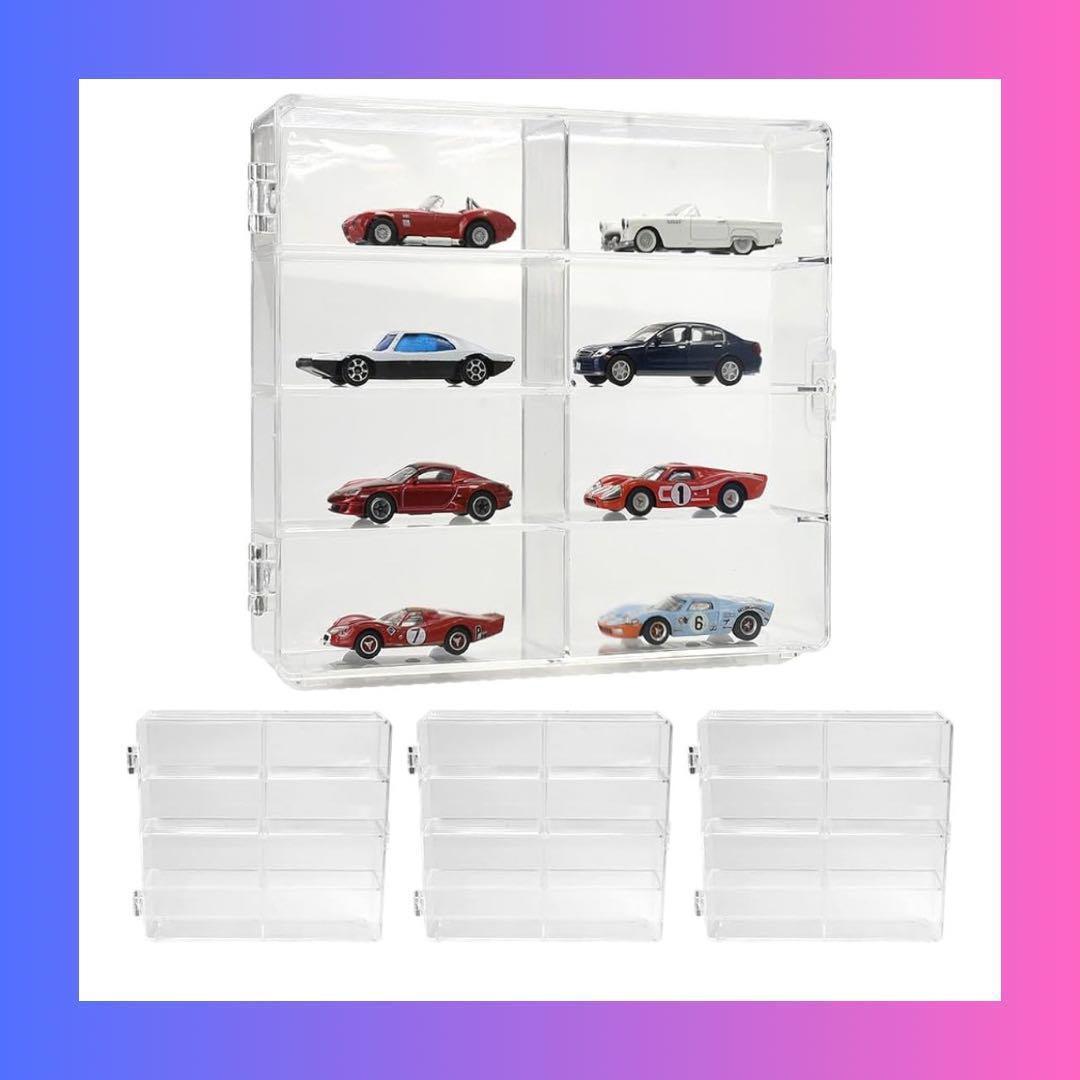 - 鑑賞用コレクションケース クリアカラー ミニカー収納 積み重ね 傷付き防止 4個