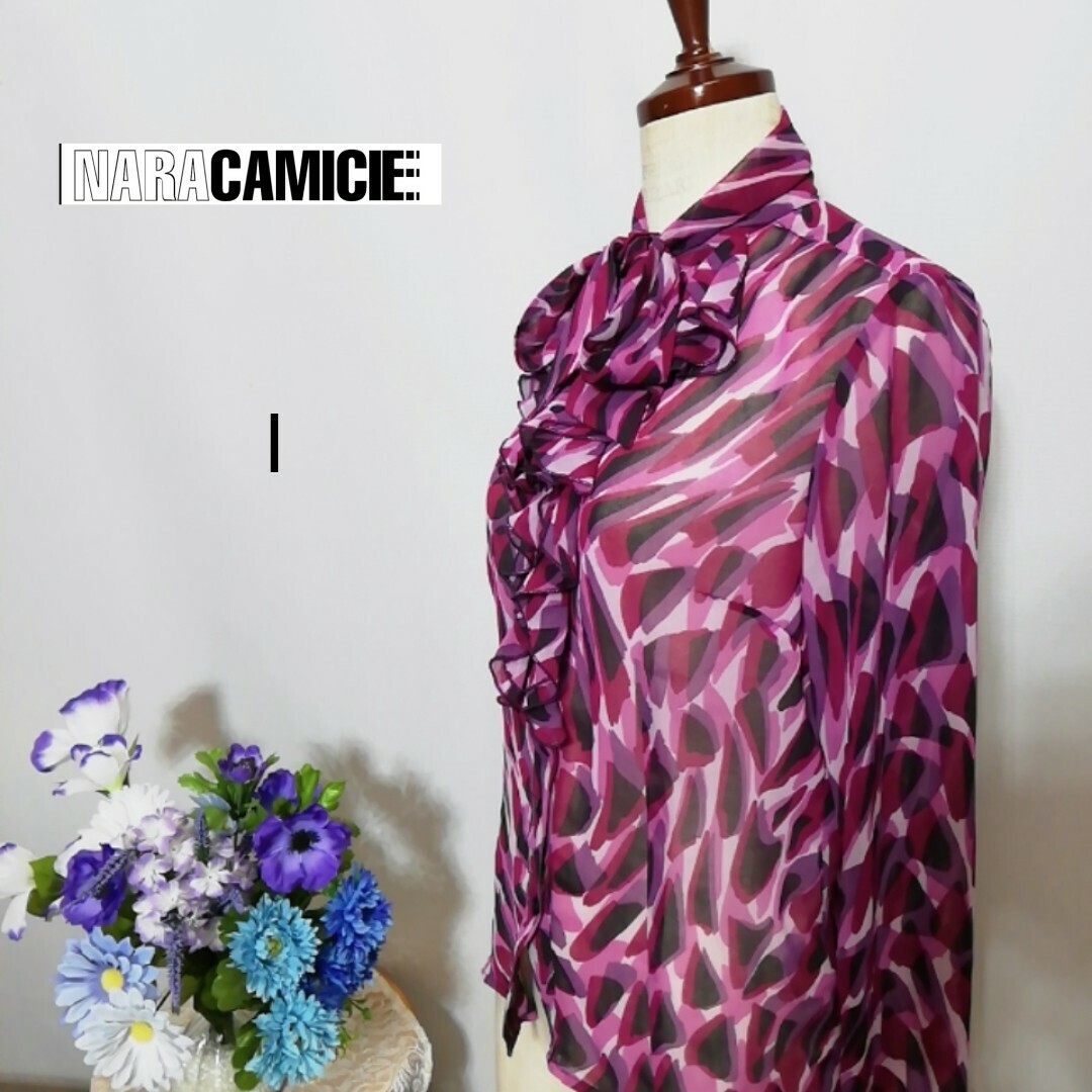 - 極上美品 ナラカミーチェ 透け感有り 長袖ブラウス 総柄 Мサイズ