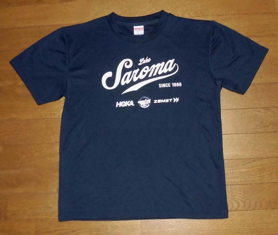 > 2021 Lake Saroma サロマ湖 100キロ ウルトラマラソン Tシャツ 半袖 ドライ NVY S ほぼ未使用 美品/ジョグHOKAホカオネオネZAMSTランニング