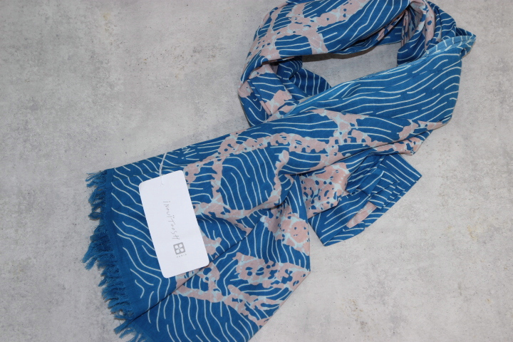> 未使用 INOUI TOOSH (イヌイトゥーシュ) ジェリーフィッシュ コットン ストール / 大判 / クラゲ柄 / INOUI EDITIONS / ブルー