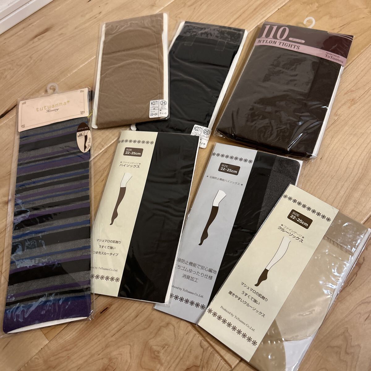 - 7個セット ML ストッキング タイツ パンスト クルーソックス ハイソックス 110デニール 黒ベージュ ココアブラウン チュチュアンナ