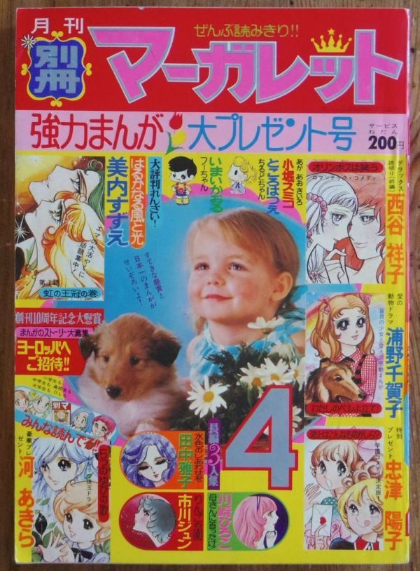 > 別冊マーガレット 1974年4月号 西谷祥子 市川ジュン 美内すずえ 和田慎二 忠津陽子 浦野千賀子 河あきら いまいかおる 田中雅子 川崎ひろこ