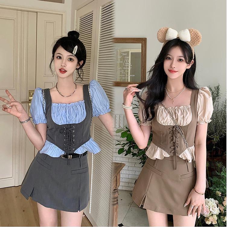 - 新品大きいサイズ セットアップ トップス ショートパンツ 重ね着風春夏 秋 新品