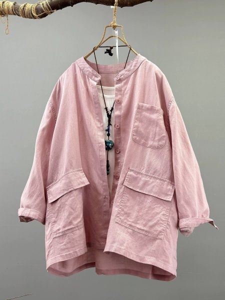 > c 2508 カーディガン フリーサイズ ワイシャツ チュニックトップス ナチュラル 麻100% RINEN リネン サラサラ 通気性良い 大きなポケット5