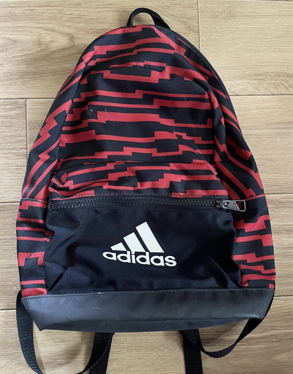 > ◆adidas アディダス リュックサック リュック かばん カバン 鞄 通園 遠足 ハイキング 小さめ 幼稚園 保育園 赤×黒 中古