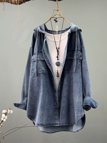 - c 2508 フード フリーサイズ チュニック トップス ナチュラル 綿100% ゆったり デニム ジーンズ