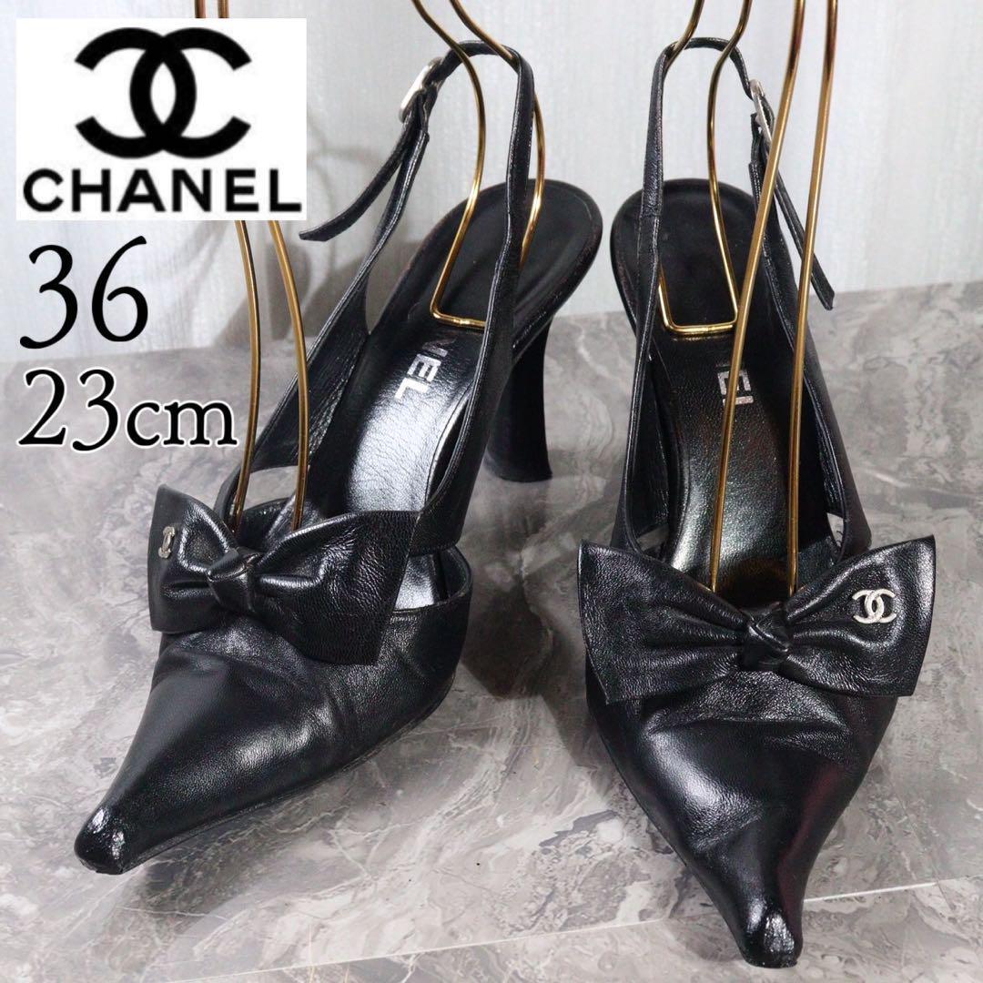 - CHANEL シャネル 23 パンプス ミュール バックストラップ リボン 黒