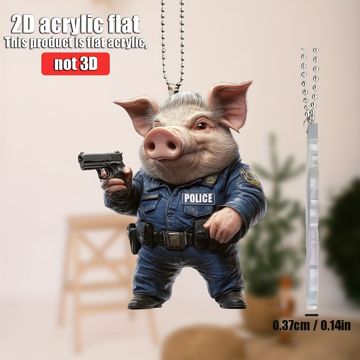 - キーホルダー ポリス ブタ アクリル 平面 2D 動物 アクリル 8cm 豚の警察 吊り下げ かわいい アニマル 車 バックミラー インテリア t7925