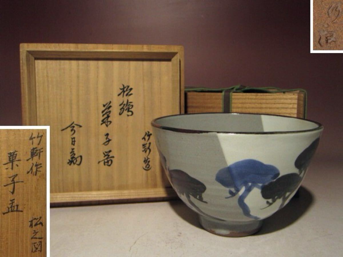 - 三浦竹軒作 松之図 菓子鉢★趣のある印象的な絵付け★o644