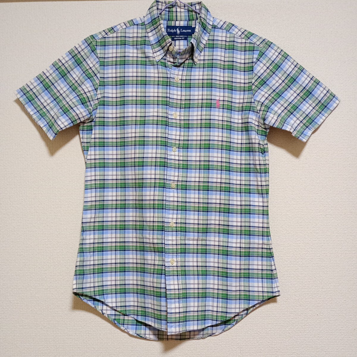 - Ralph Lauren CUSTOM FITコットンオックスフォード半袖ボタンダウンチェックシャツ S マルチカラー