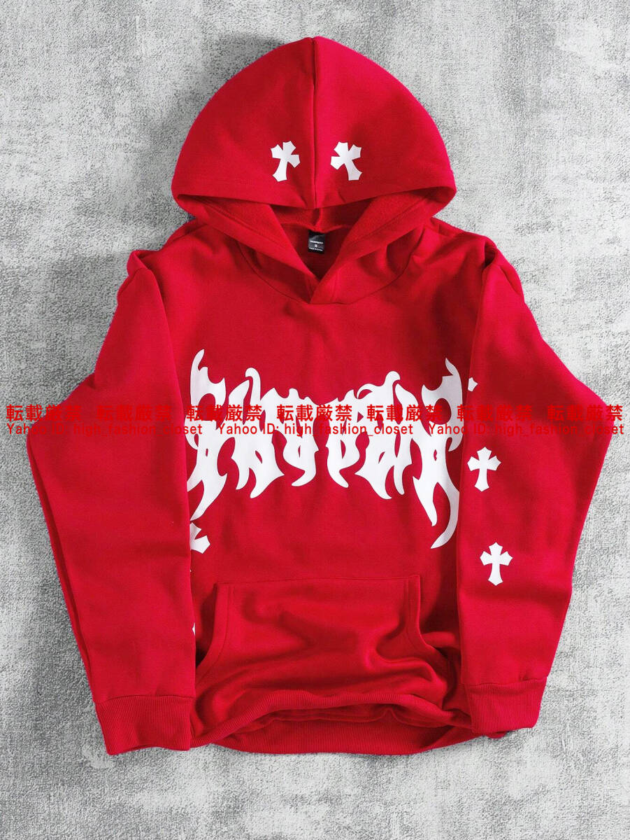 > 【送料無料】美品 SHEIN クロスプリント プルオーバー パーカー 長袖 オーバーサイズ 男女兼用 韓国ファッション K-POP Y2K XU DOG