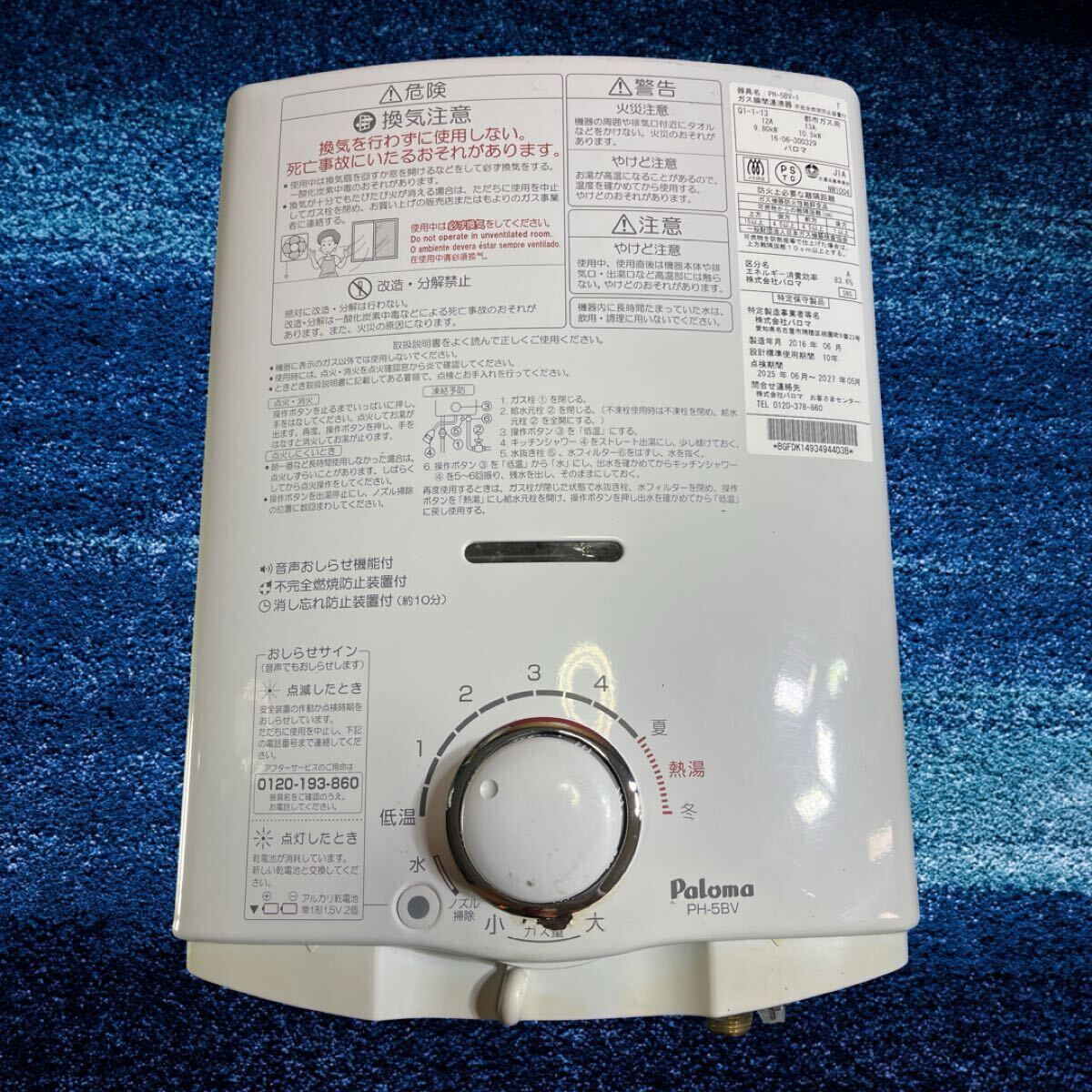- (中古品)パロマ ガス瞬間湯沸し器、PH-55V-1、都市ガス用、2016年製。